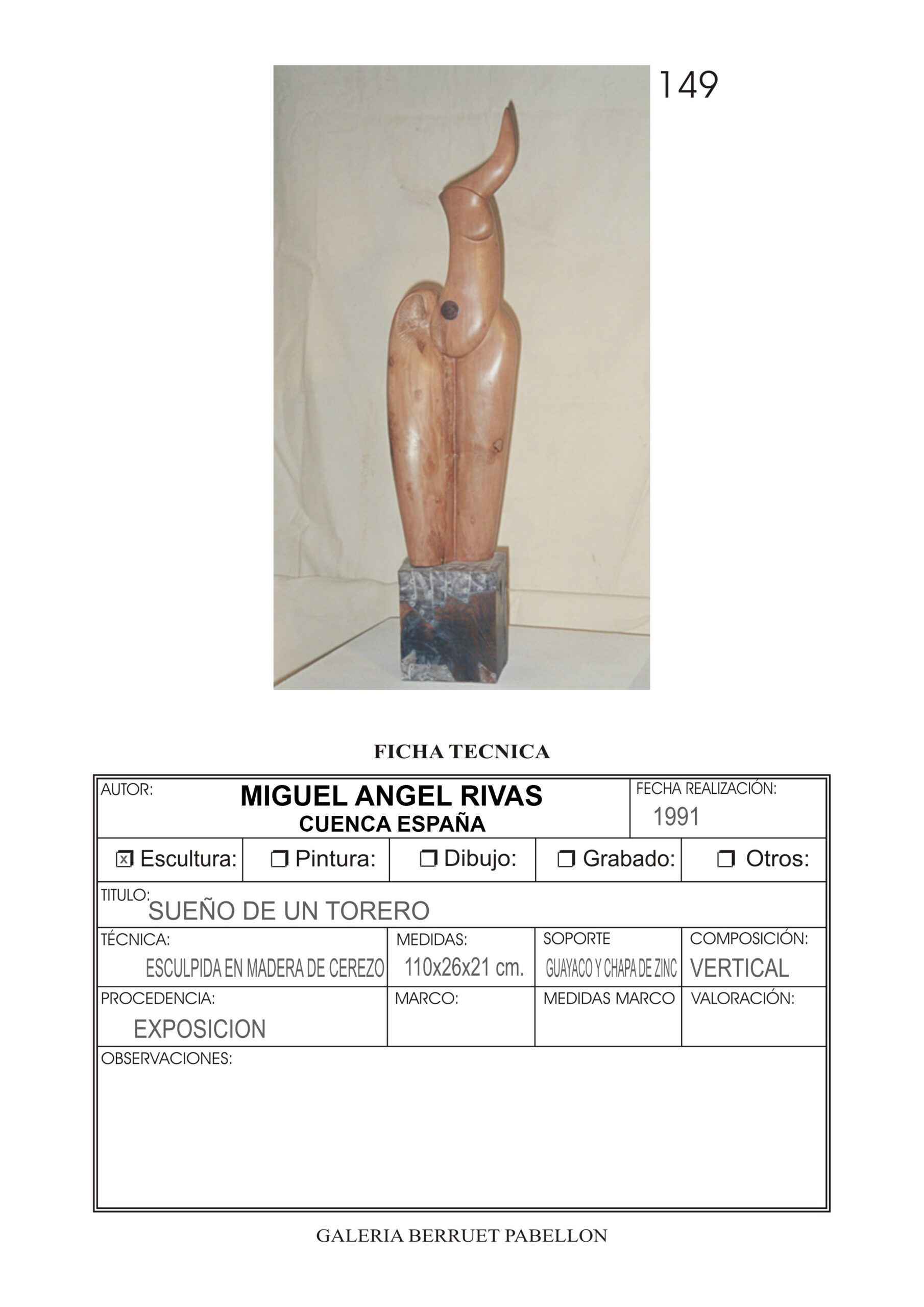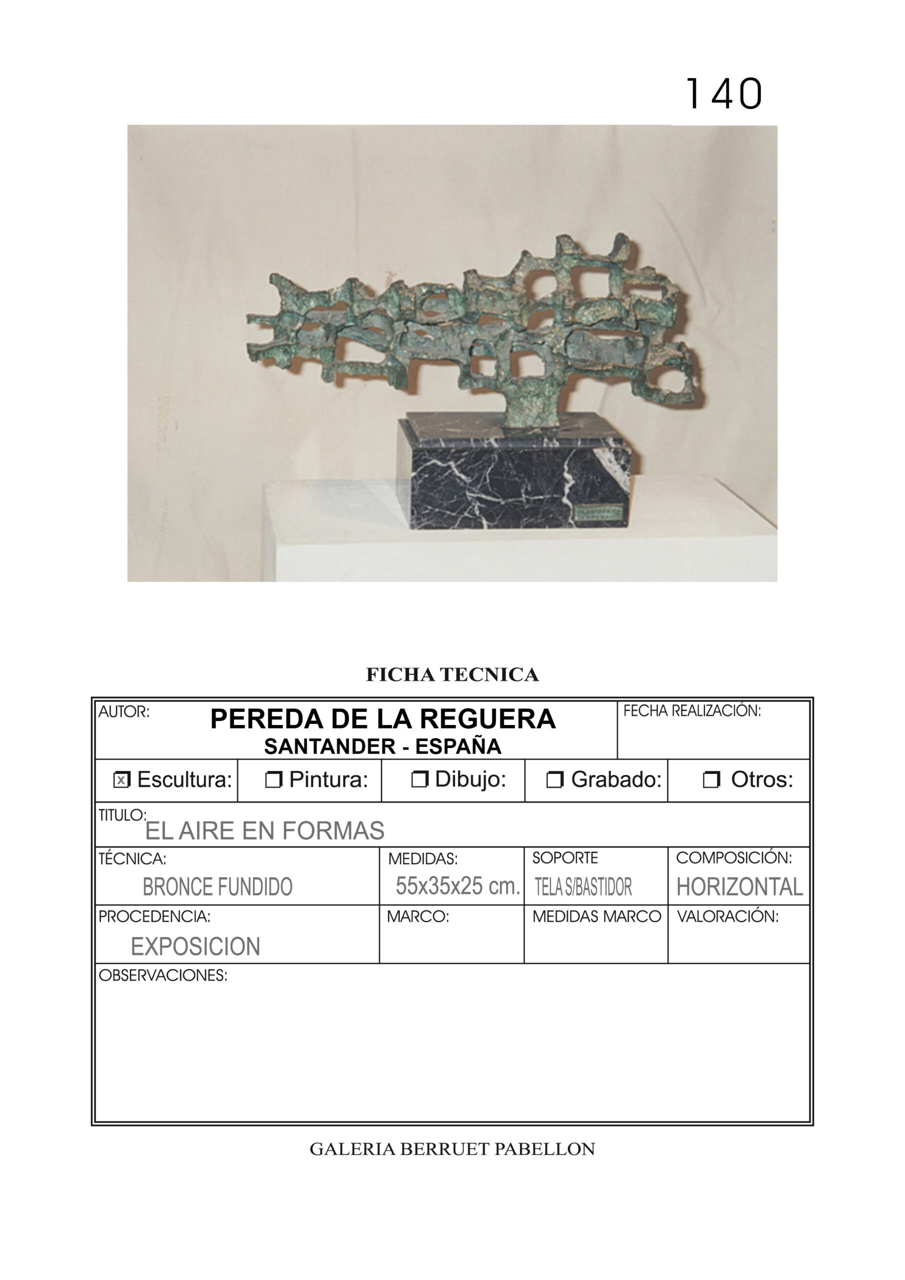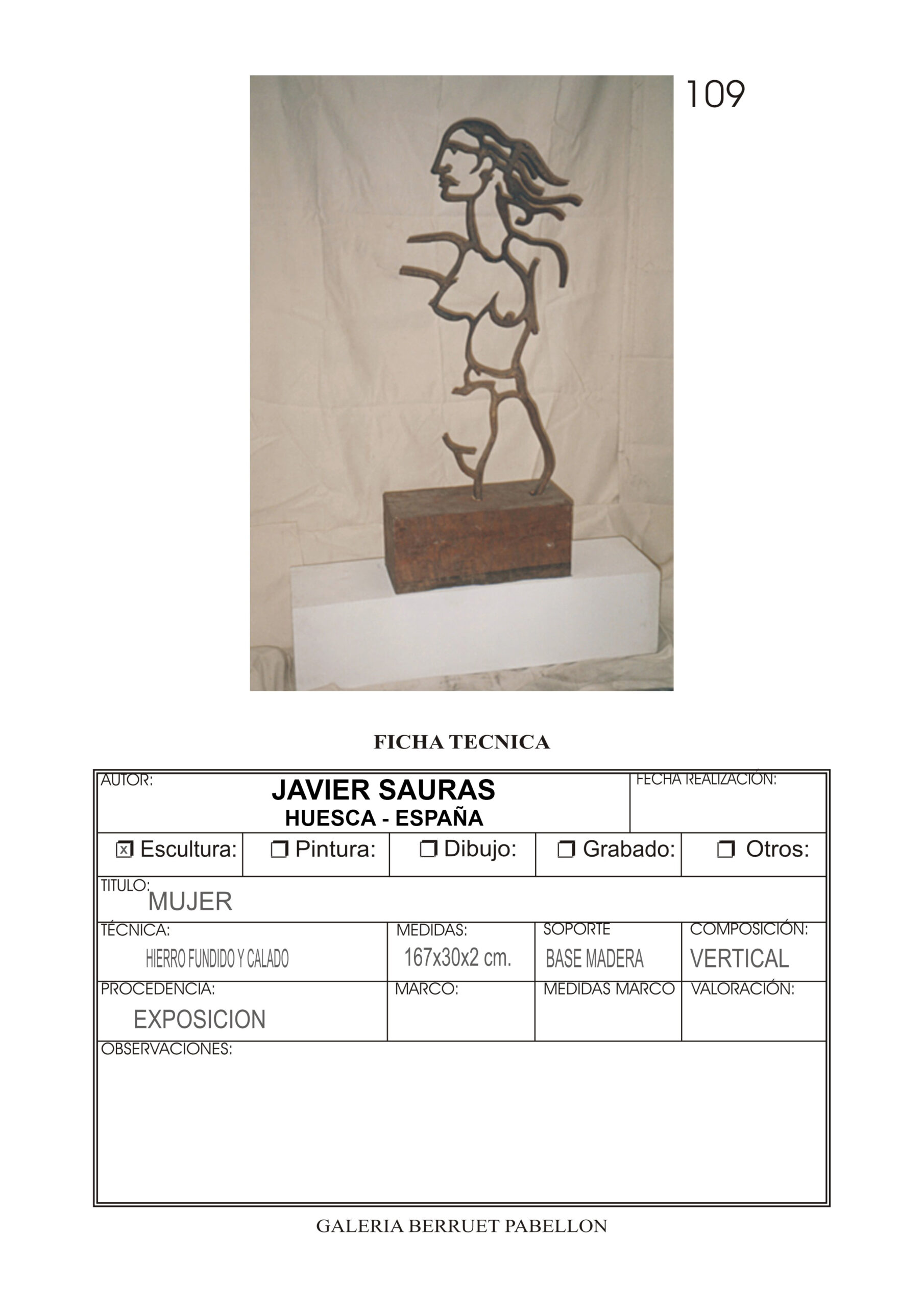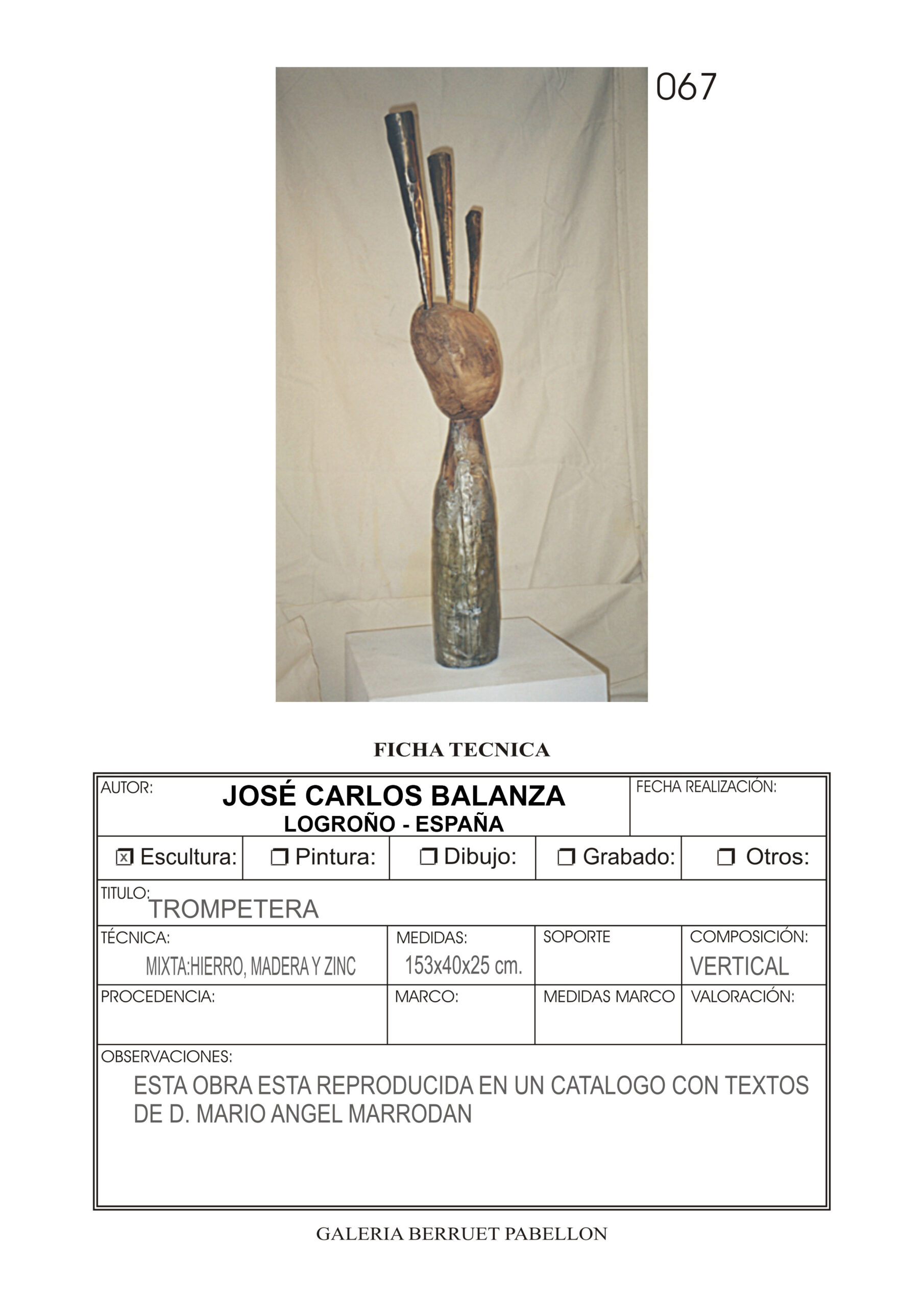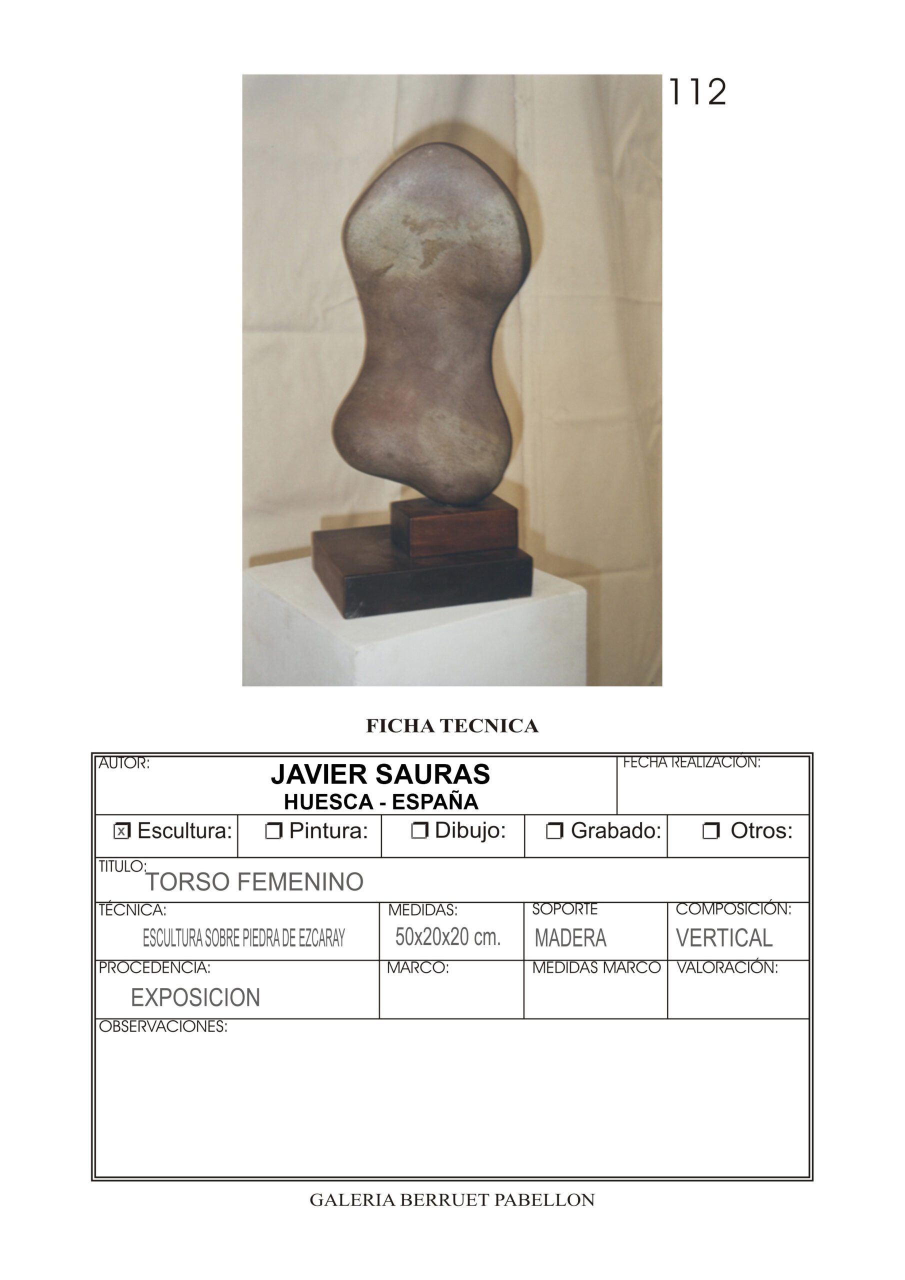 A continuación le mostramos la totalidad de las esculturas de la galería. Por favor, si se encuentra interesado en una de ellas o en varias, comuníquese con nosotros a través del apartado de contacto, indicando el número de cada ficha para poder ofrecerle un servicio más dinámico.