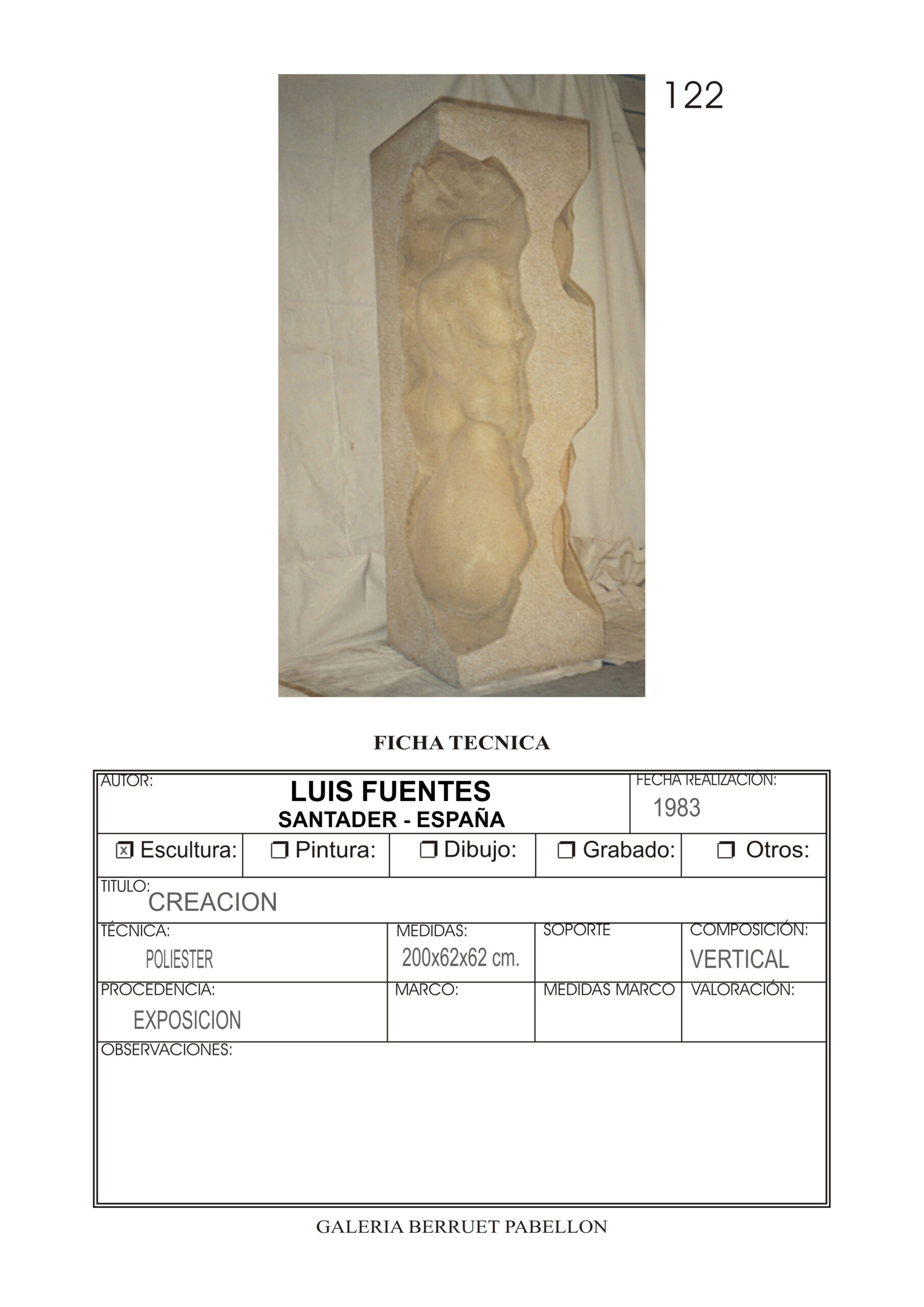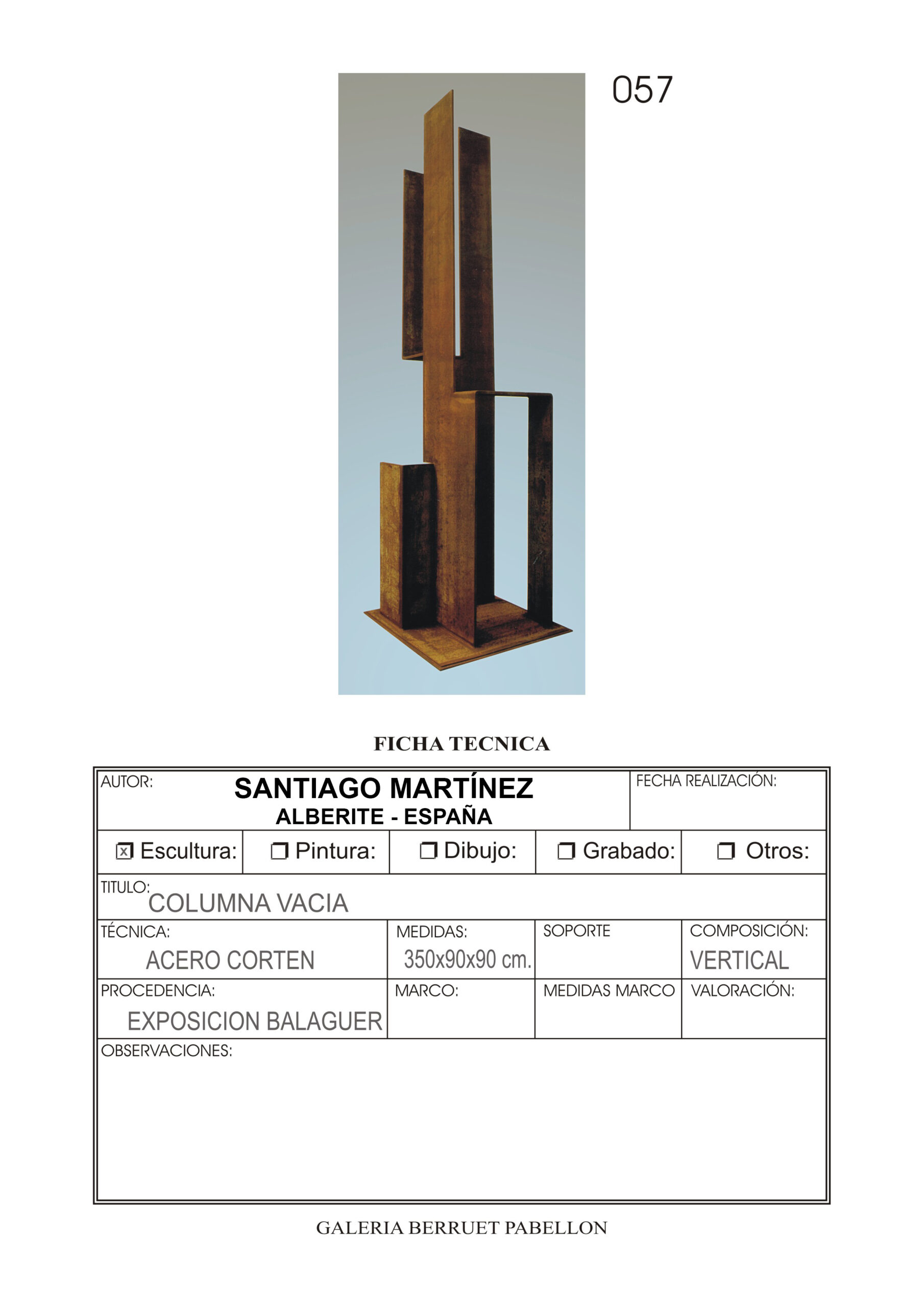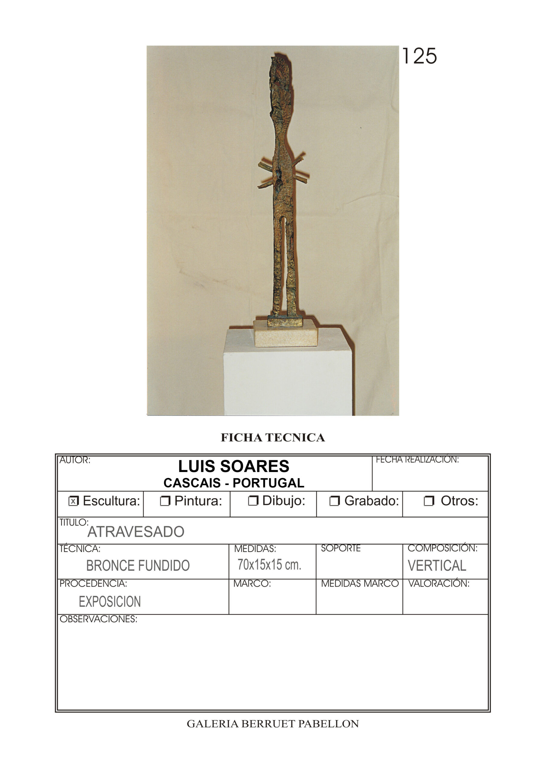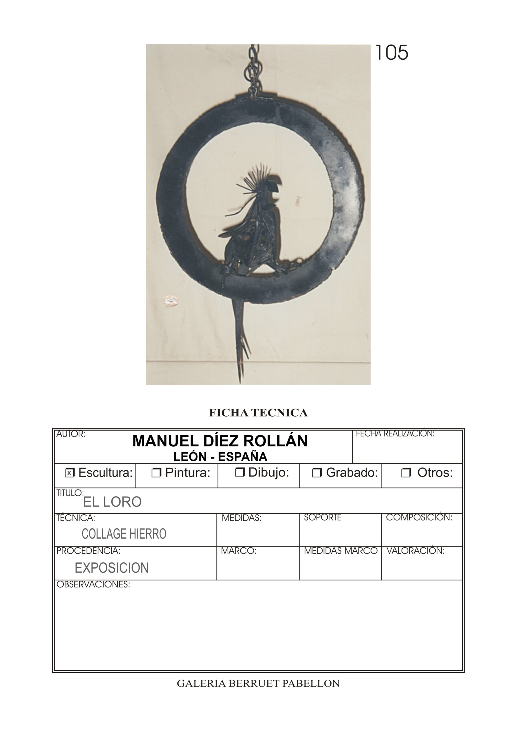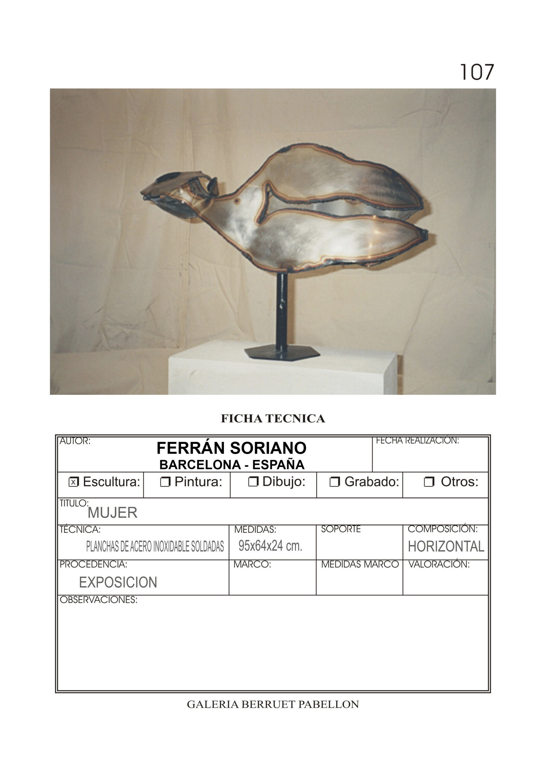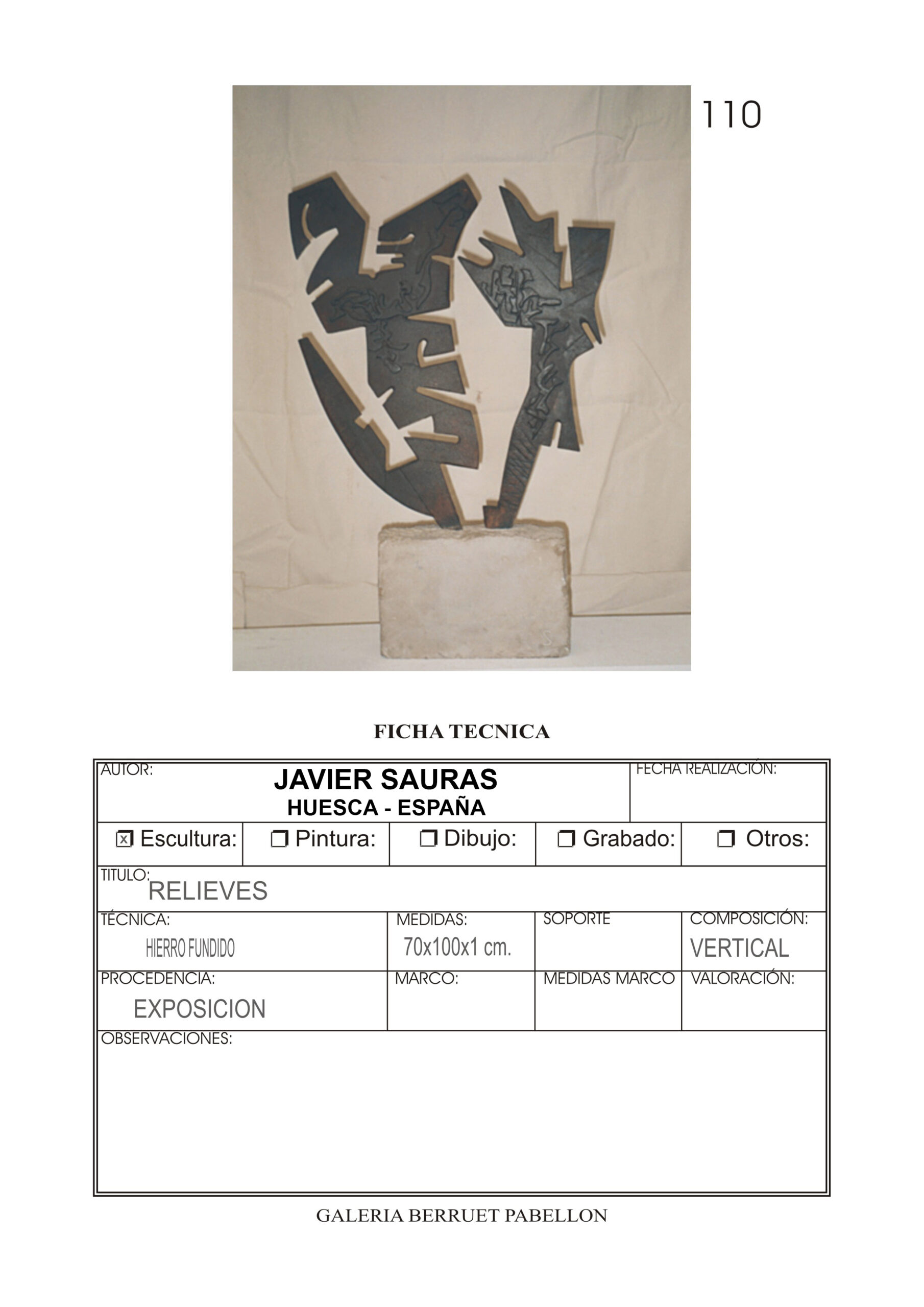 A continuación le mostramos la totalidad de las esculturas de la galería. Por favor, si se encuentra interesado en una de ellas o en varias, comuníquese con nosotros a través del apartado de contacto, indicando el número de cada ficha para poder ofrecerle un servicio más dinámico.