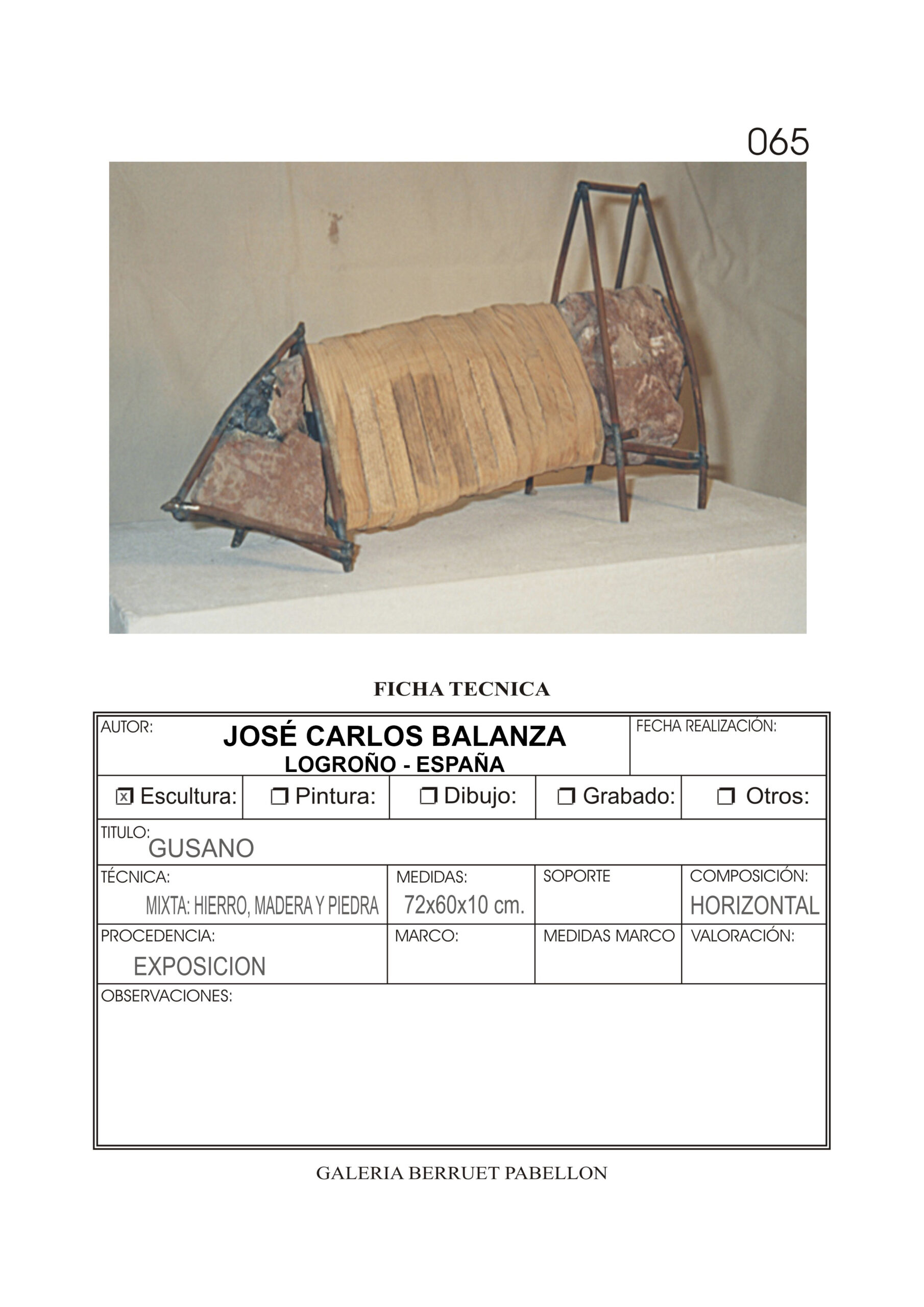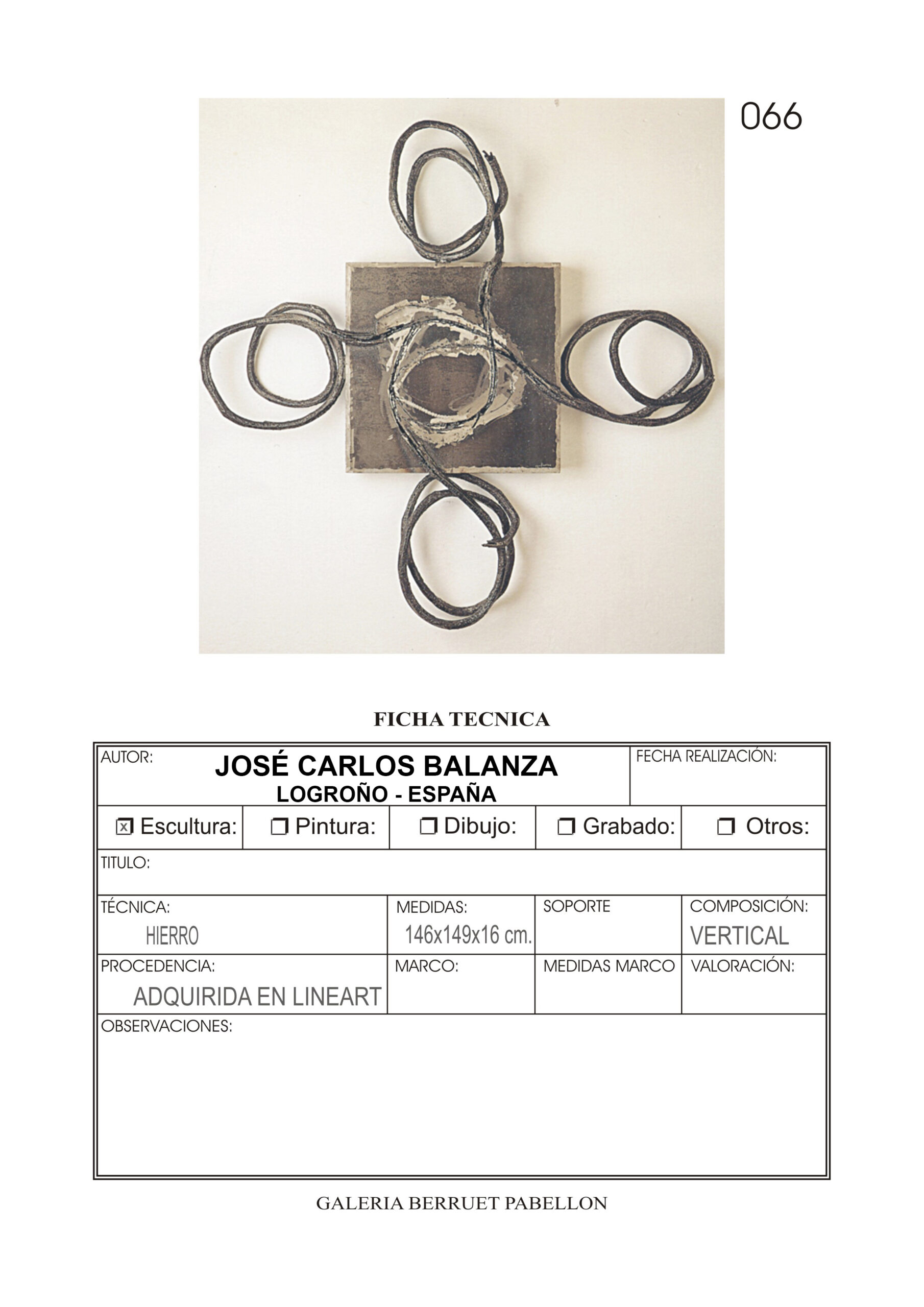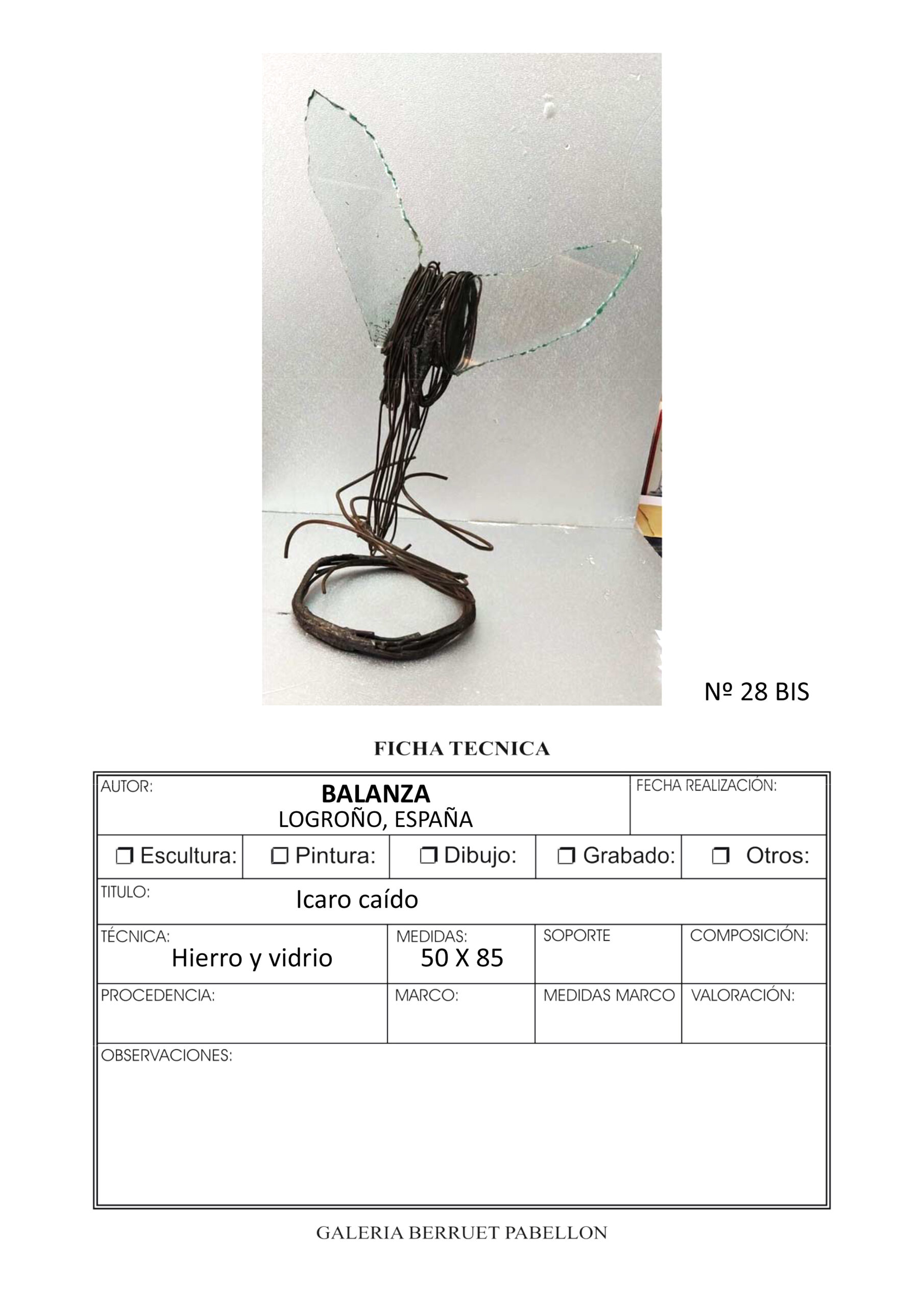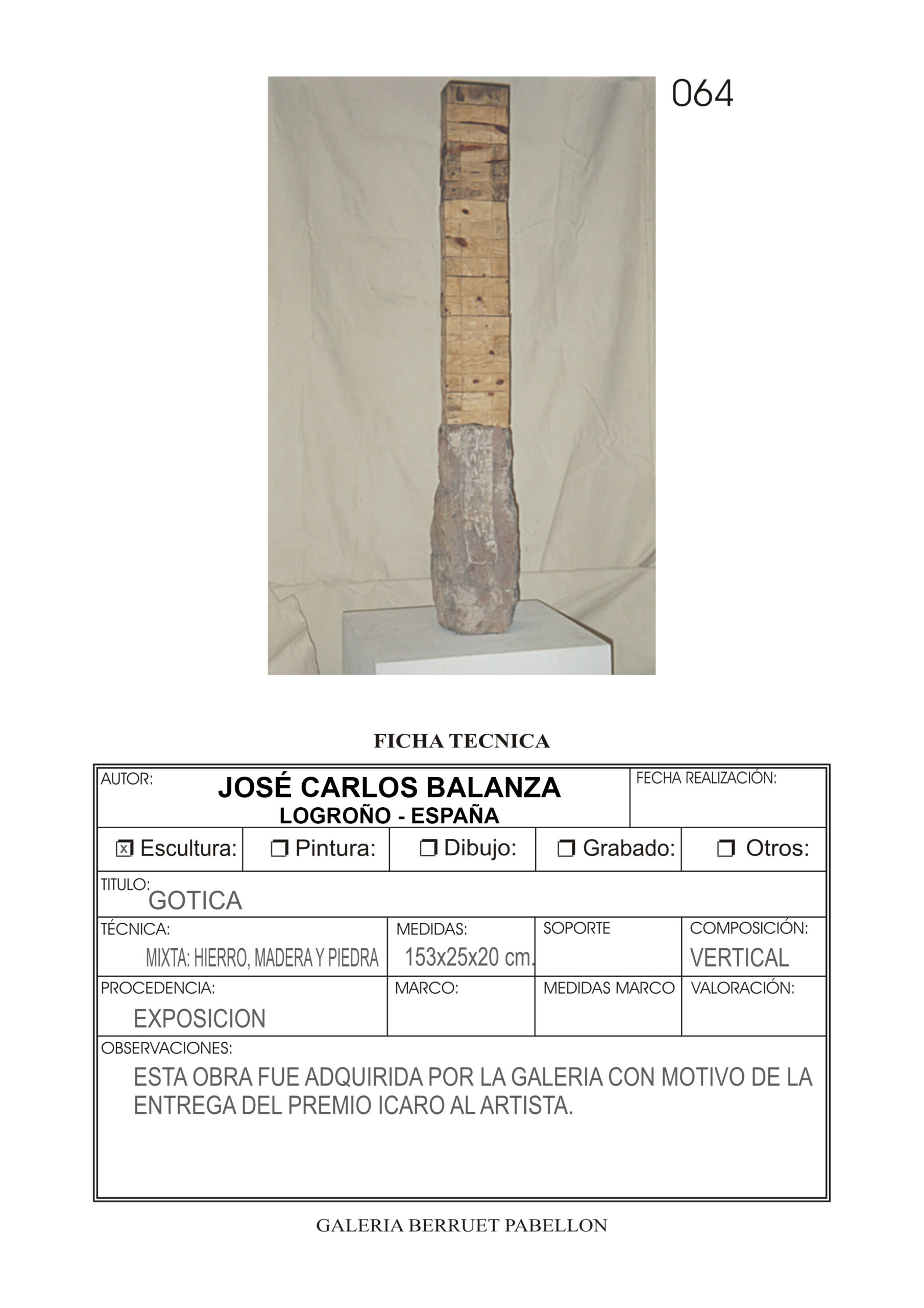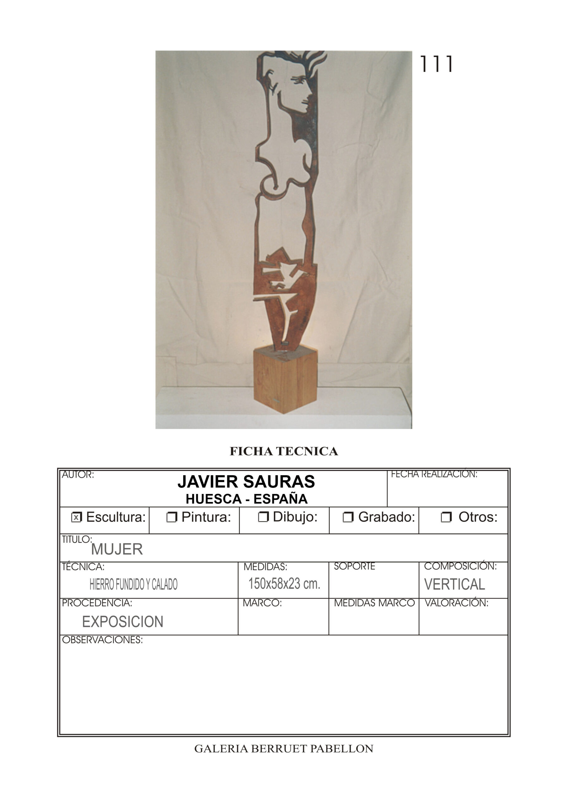 A continuación le mostramos la totalidad de las esculturas de la galería. Por favor, si se encuentra interesado en una de ellas o en varias, comuníquese con nosotros a través del apartado de contacto, indicando el número de cada ficha para poder ofrecerle un servicio más dinámico.