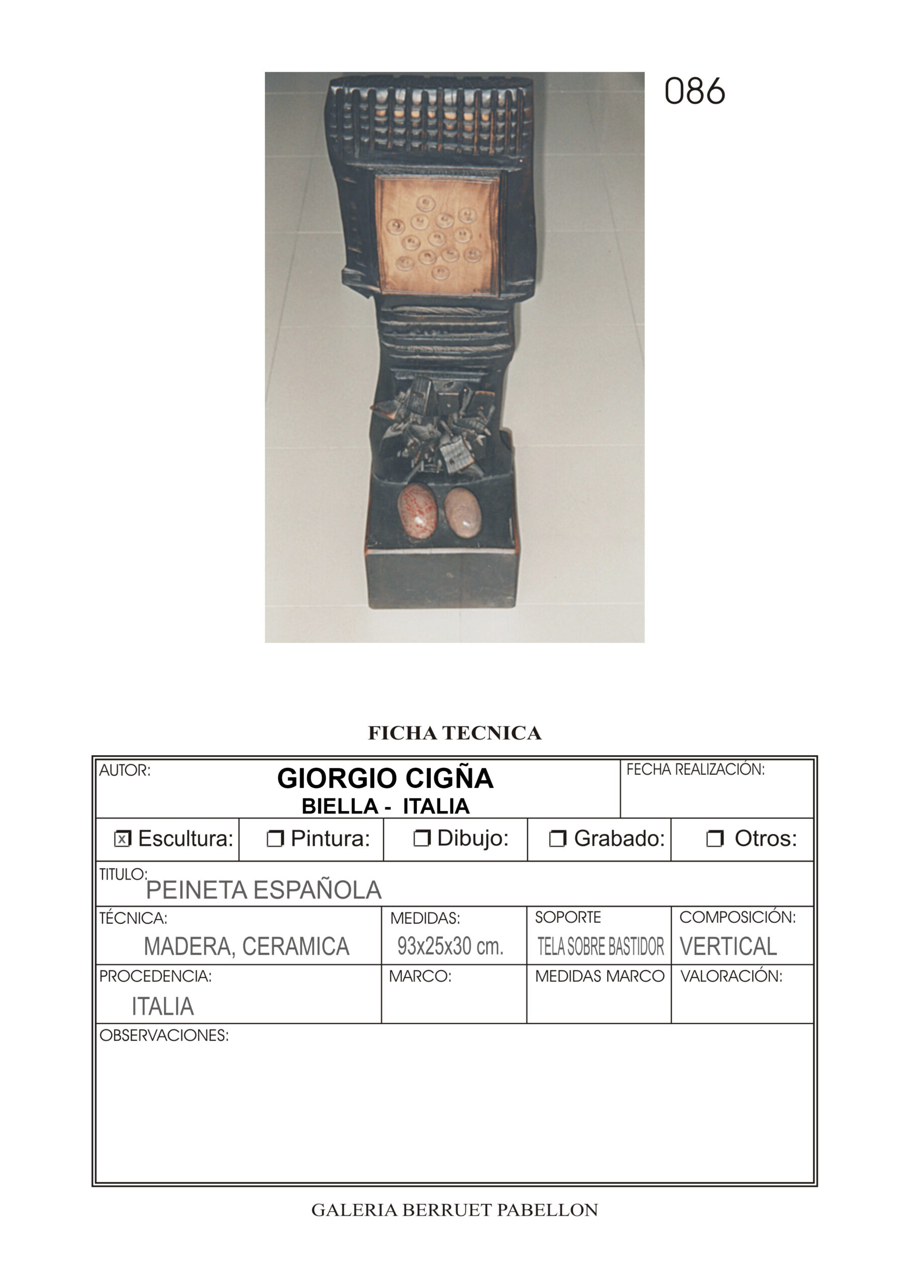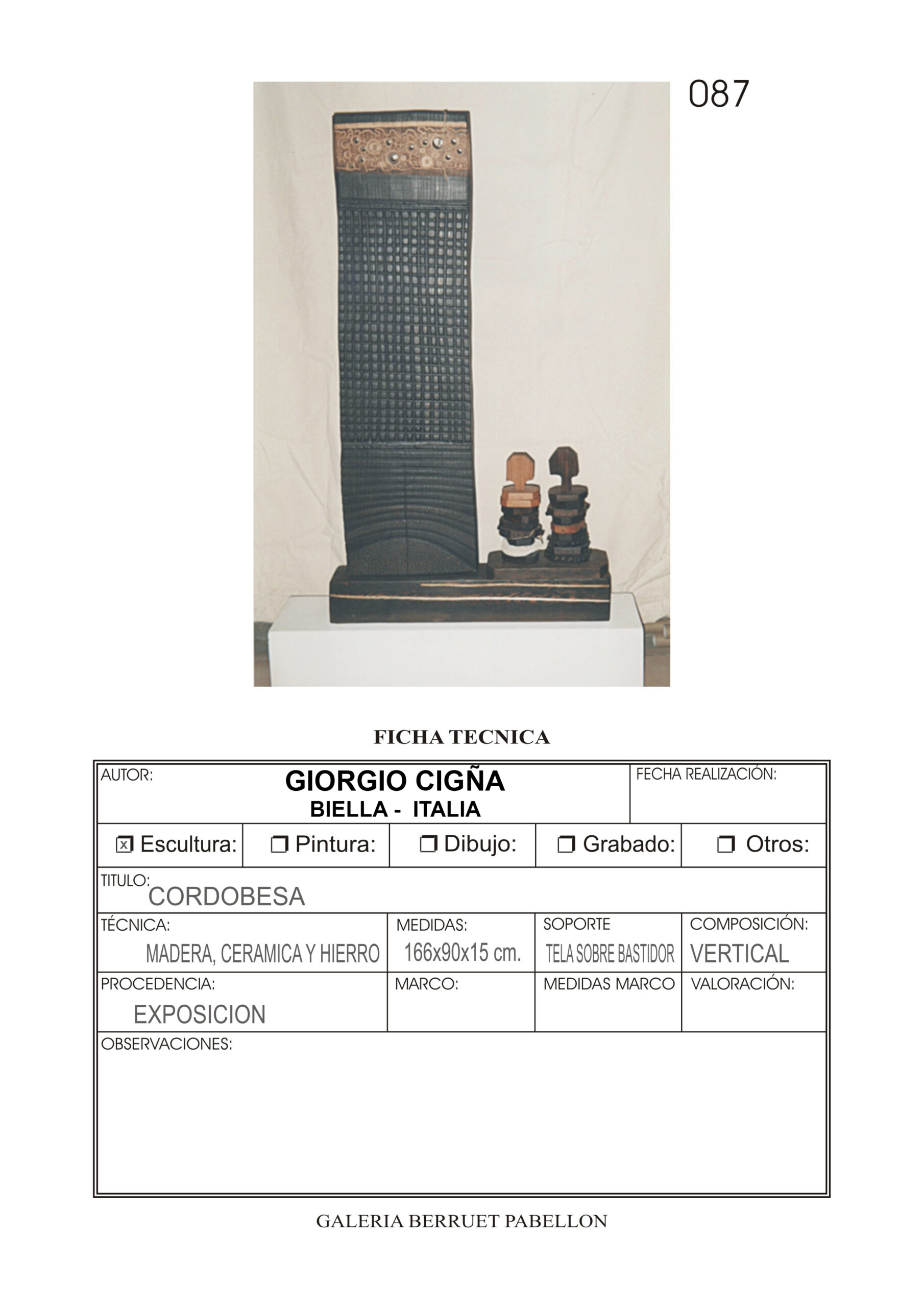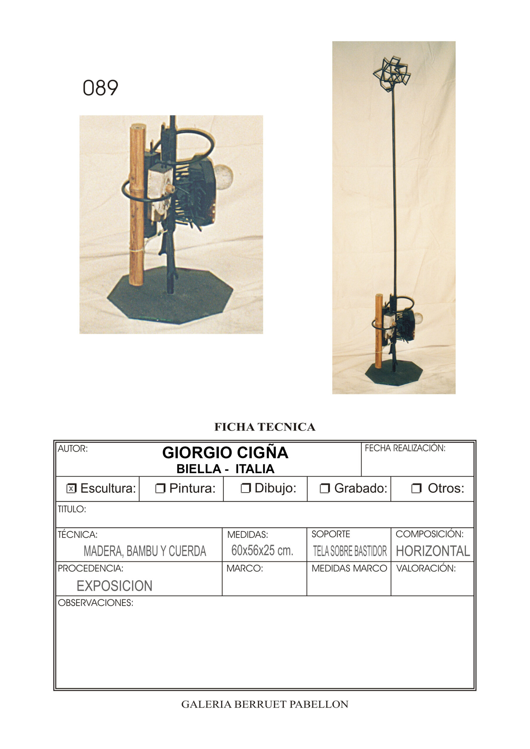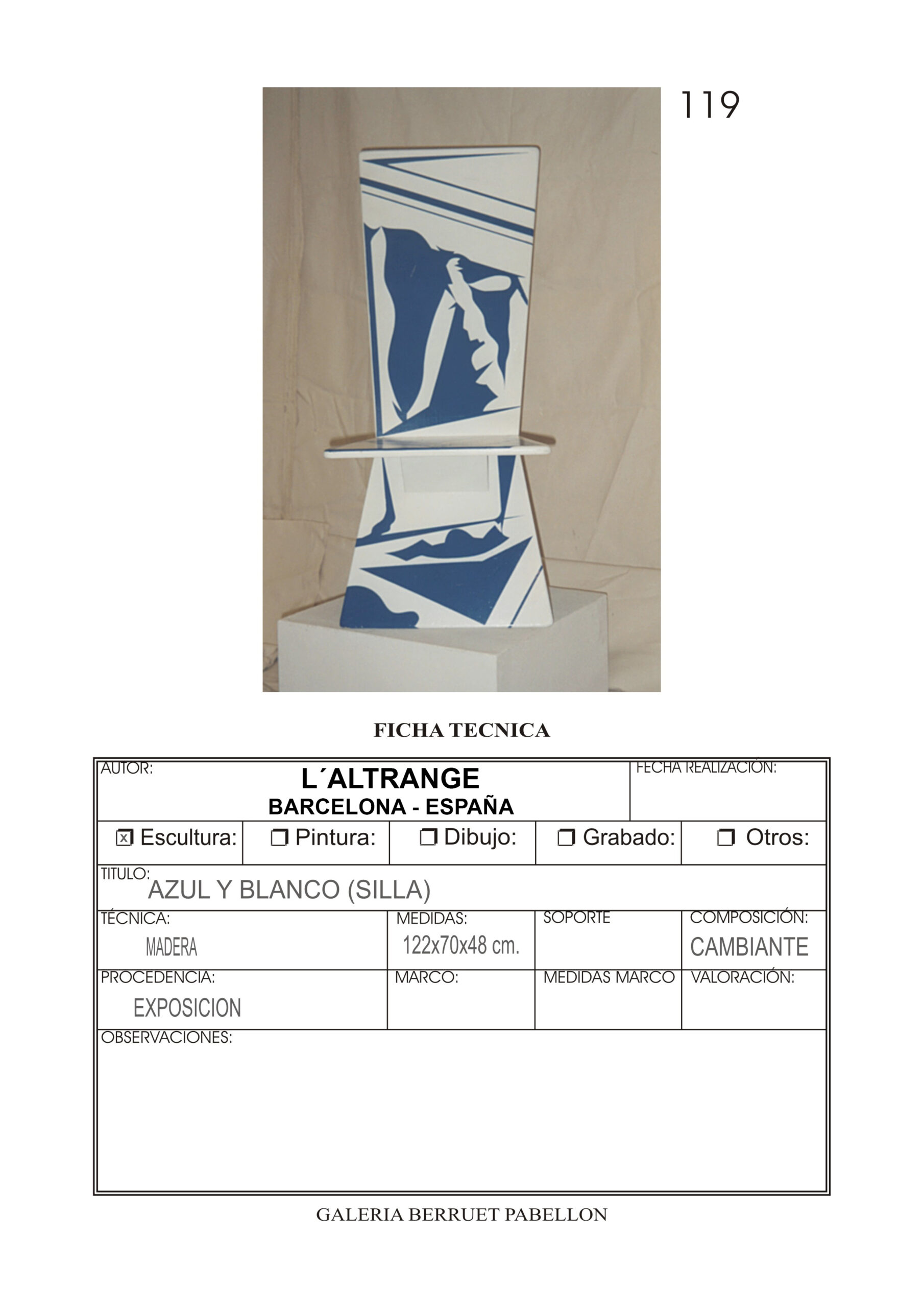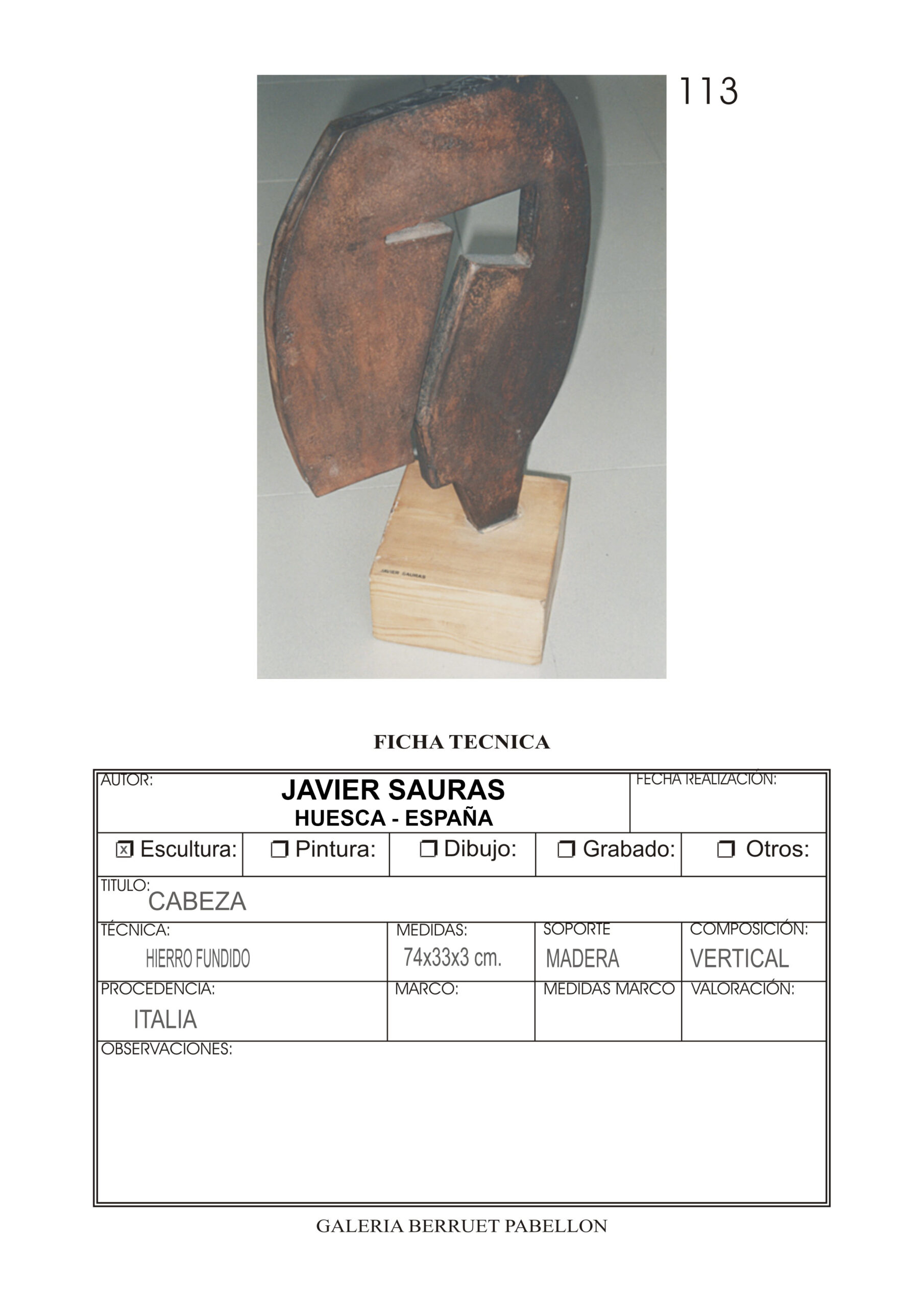 A continuación le mostramos la totalidad de las esculturas de la galería. Por favor, si se encuentra interesado en una de ellas o en varias, comuníquese con nosotros a través del apartado de contacto, indicando el número de cada ficha para poder ofrecerle un servicio más dinámico.