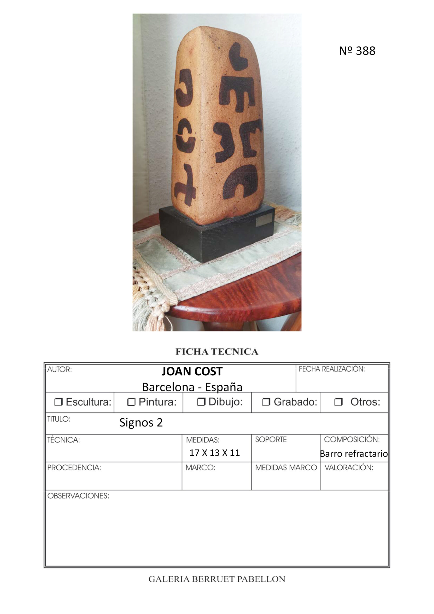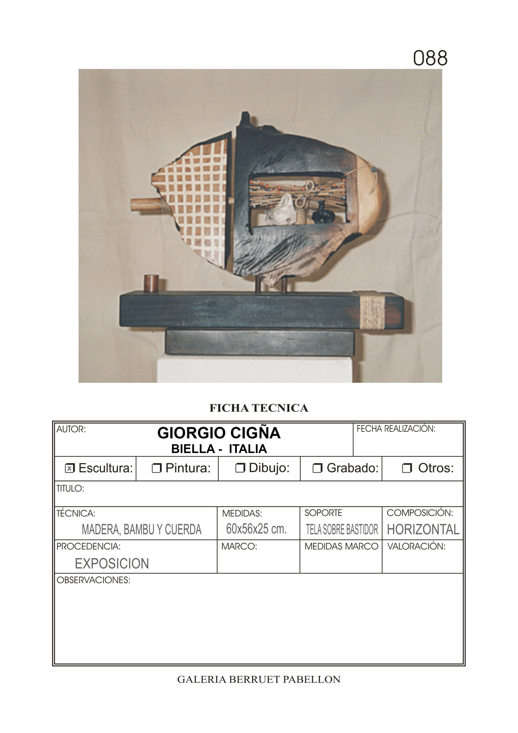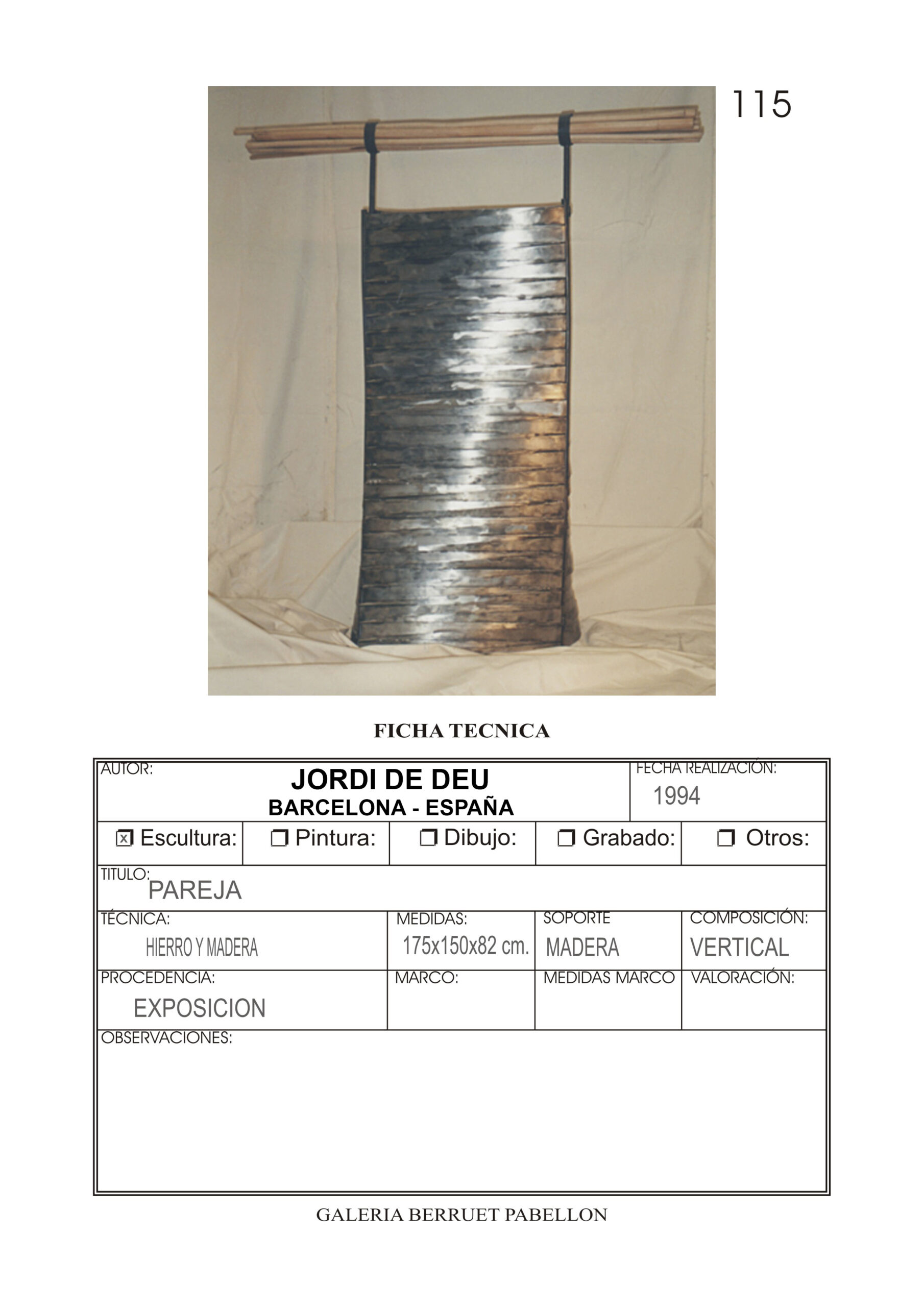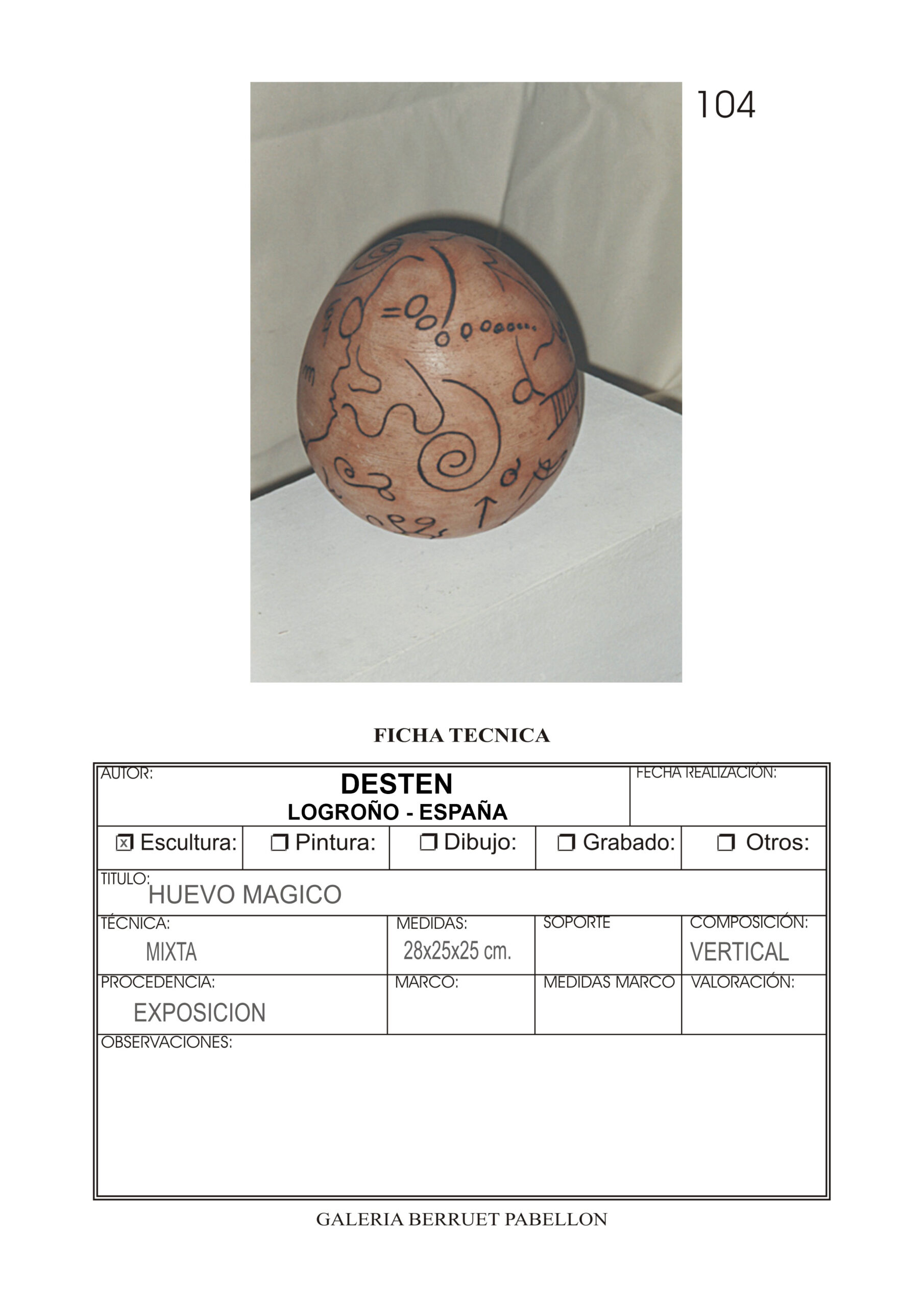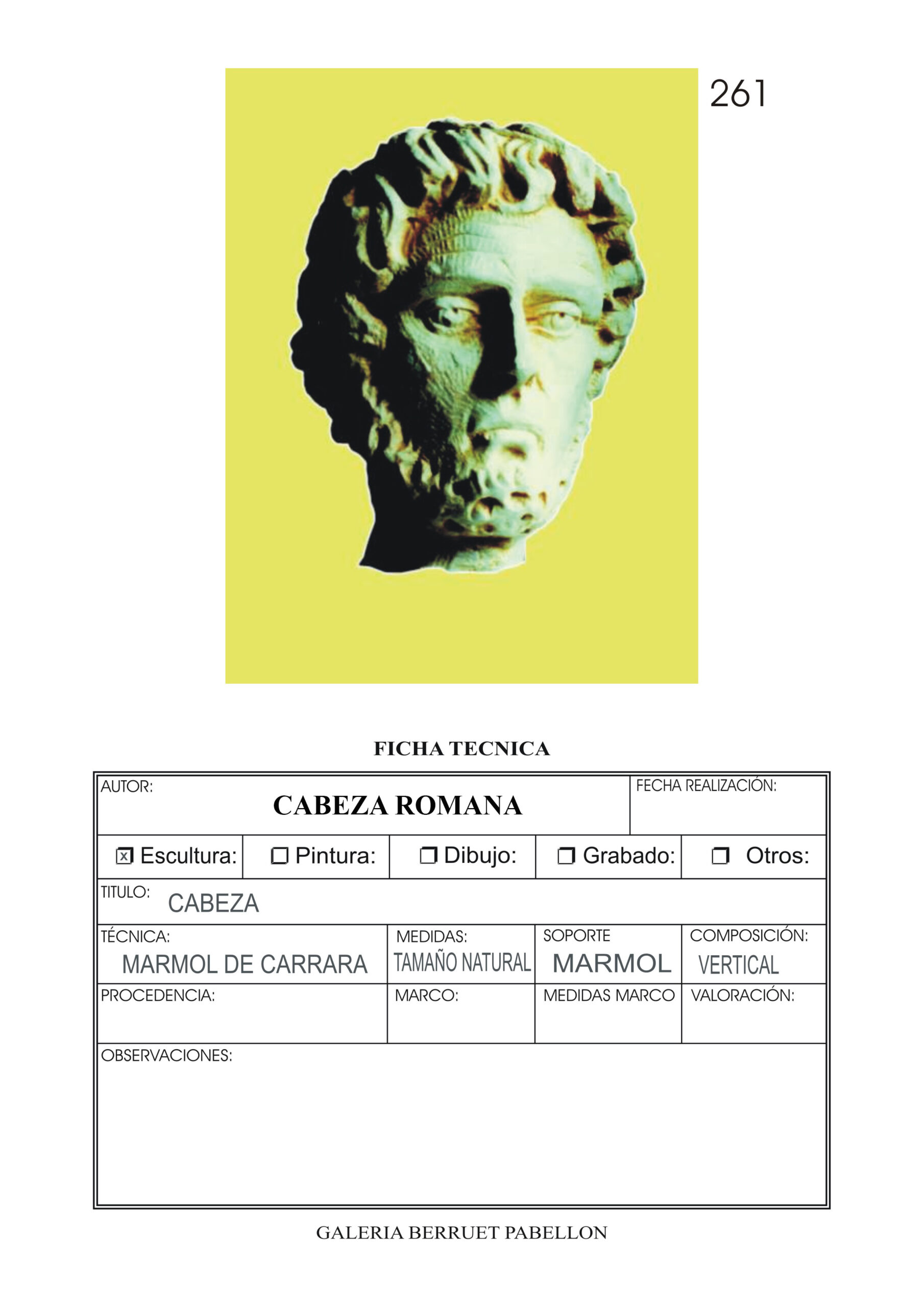 A continuación le mostramos la totalidad de las esculturas de la galería. Por favor, si se encuentra interesado en una de ellas o en varias, comuníquese con nosotros a través del apartado de contacto, indicando el número de cada ficha para poder ofrecerle un servicio más dinámico.